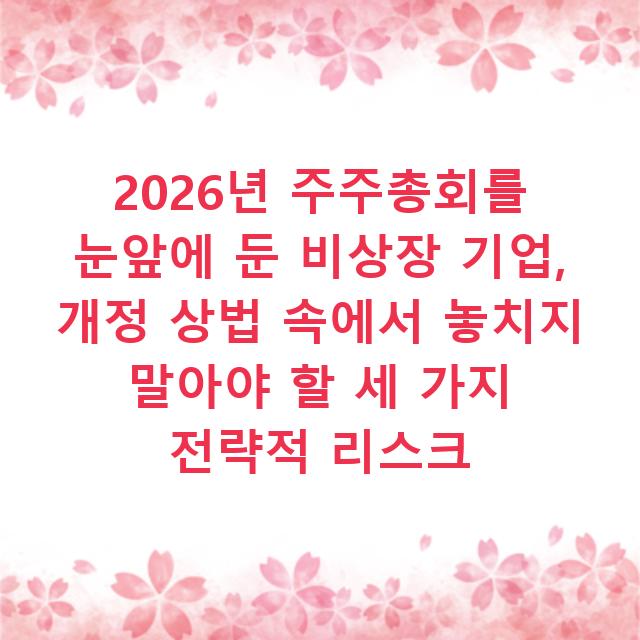 2026년 주주총회를 눈앞에 둔 비상장 기업, 개정 상법 속에서 놓치지 말아야 할 세 가지 전략적 리스크