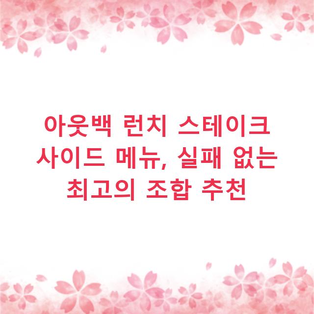 아웃백 런치 스테이크 사이드 메뉴, 실패 없는 최고의 조합 추천
