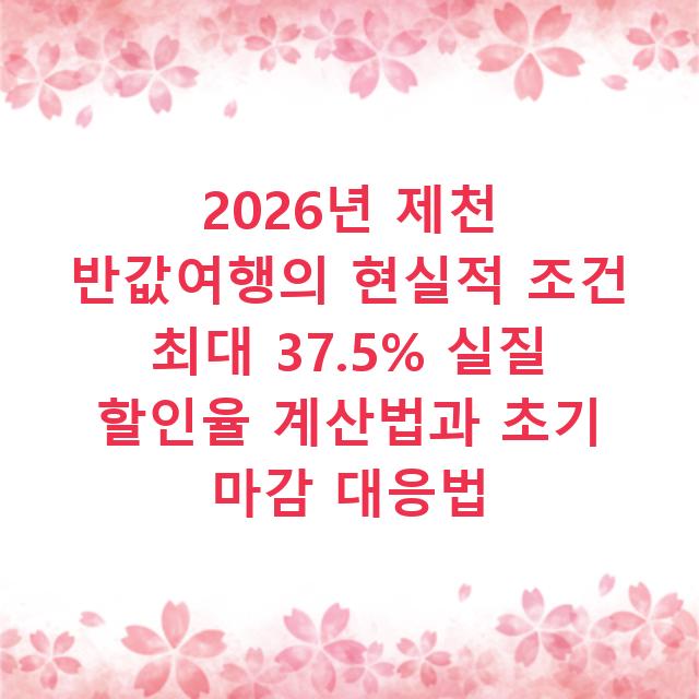 1. 2026년 제천 반값여행의 최대 실질 할인율은 37.5% 수준입니다. 숙박 50%, 식비 30%, 체험 25%라는 각기 다른 지원율을 종합 계산해야 합니다.